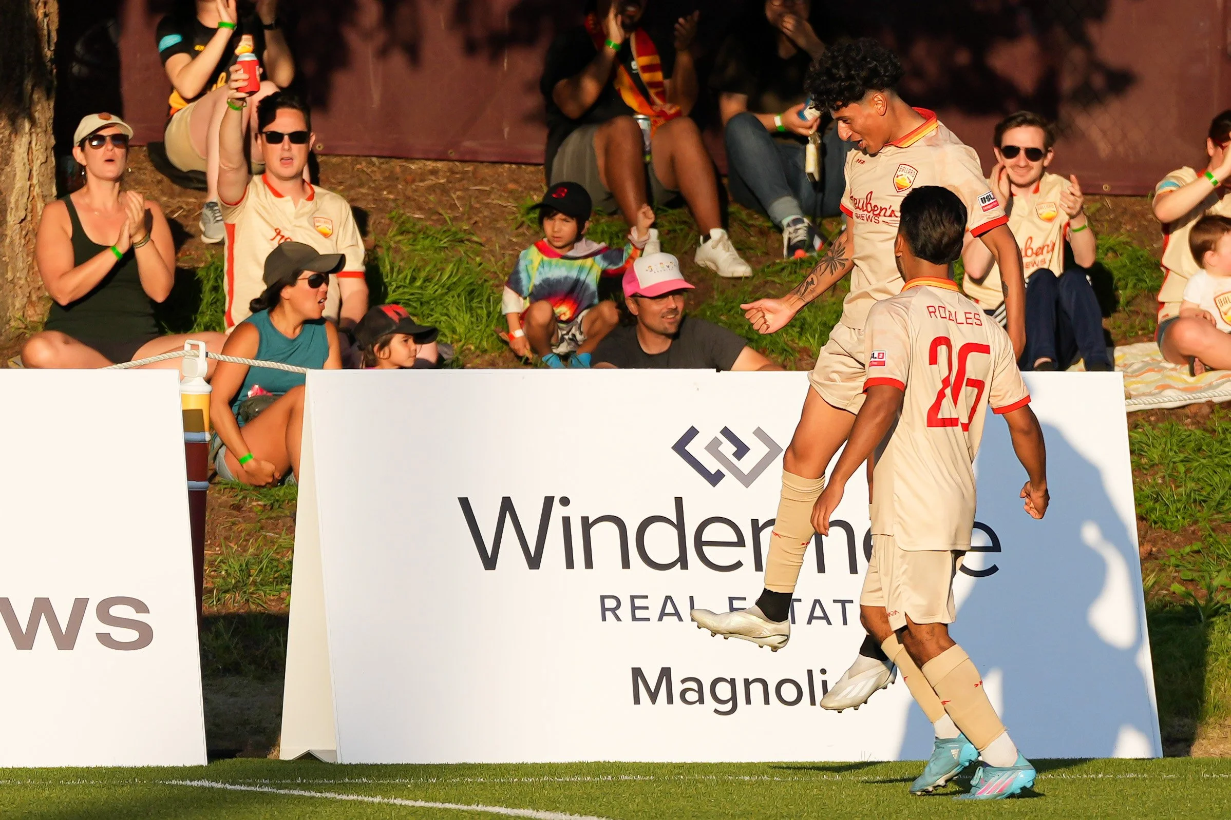 Ballard FC’s Leo Burney celebrates his 60th minute goal (Photo by Liv Lyons)