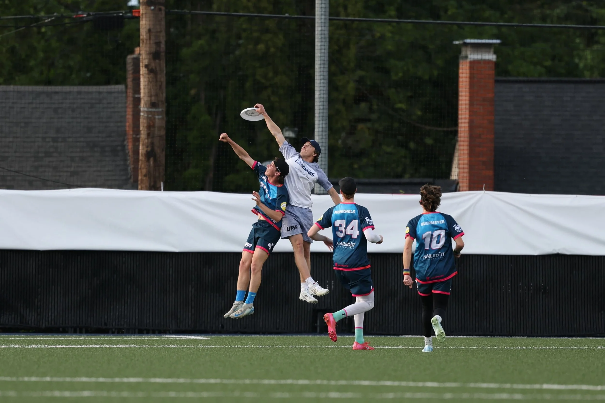 The Cascades struck first with an easy goal from Shipway to open cutter Zeppelin Raunig, but Oregon came back quickly with three goals in a row. Seattle was able to catch up with goals from hybrid player Derek Mourad, handler Tommy Li, and Shipway, with two assists from hybrid player Garrett Martin and one from handler Tony Goss. The teams continued to trade points the rest of the quarter, which ended with a massive grab from Ambrose over the top of his defender. With three seconds left on the clock, handler Louie Bertoncin connected with Ambrose to tie the game at five a piece.
