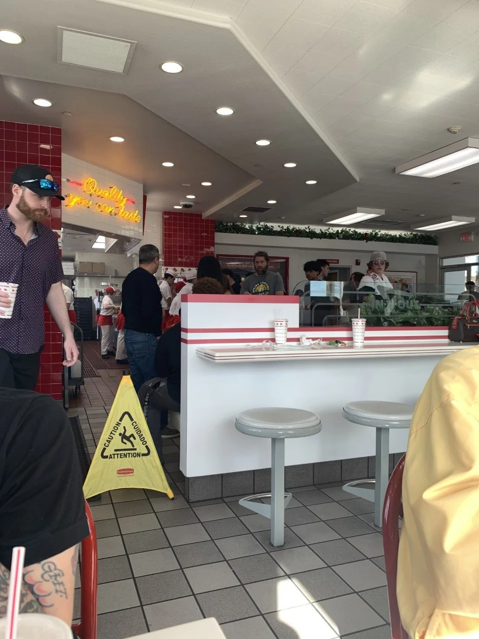The fast food chain “In-N-Out burger” is a staple in the state of California and the West Coast as a whole, gaining large scale popularity and hype. Charles, being the stubborn Seattlite that he is, had heard the comparison to Dicks burgers and even the slander about Dicks from those who adore In-N-Out. He had to at very least try out what all the hype and praise was about, considering Caean Couto, friend to Liv and Charles, had gone to the chain earlier in the year and had not been impressed. Following the conclusion of the Mariners and Padres day game, the two walked the short mile to an In-N-Out location and placed their orders, Charles purchasing a #2: Cheeseburger, fries, and a fountain drink. Once their orders had come out, it’s safe to say the experience was simply mediocre. Liv’s order had been messed up at first, and Charles was plainly not impressed with the burger itself or the fries. Overall, not a bad burger per say, but it’s just average.