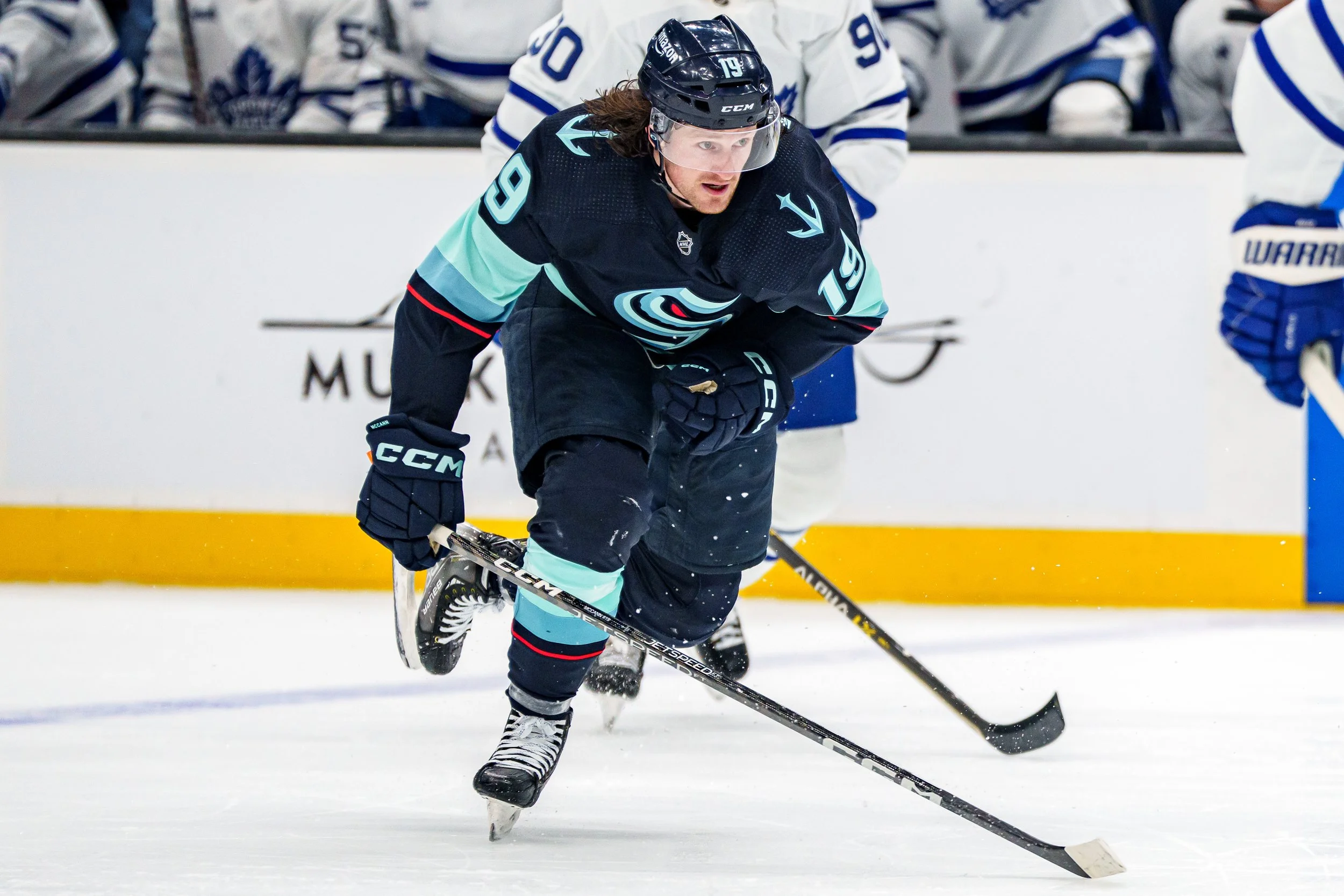 Kraken forward Jared McCann tallied an assist on the night (Photo by Liv Lyons)
