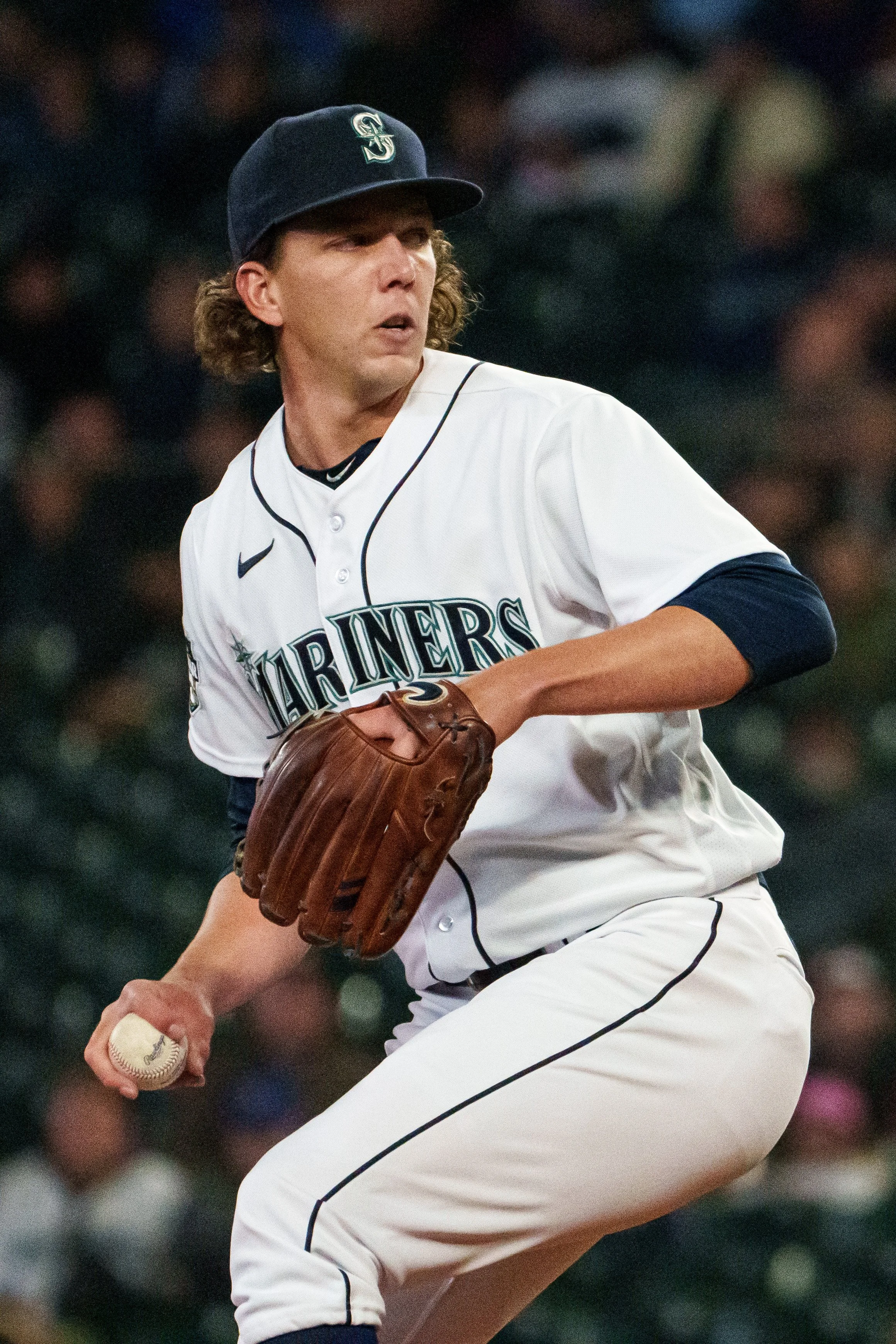 Mariners starting pitcher Logan Gilbert allowed four runs over six innings (Photo by Liv Lyons)