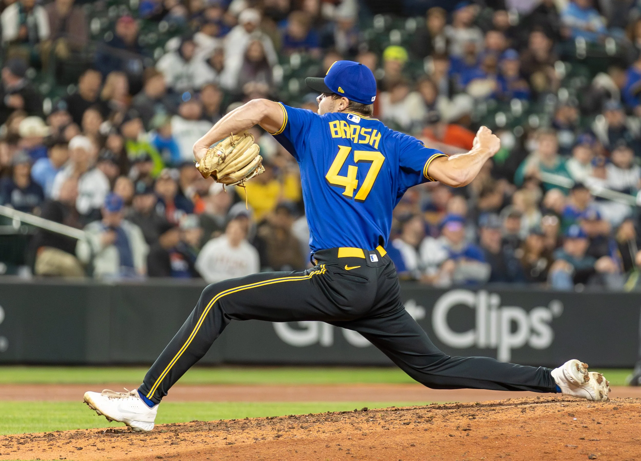 Seattle Mariners reliever Matt Brash couldn’t keep the score at 4-4 (Photo by Mathew Bermudez)
