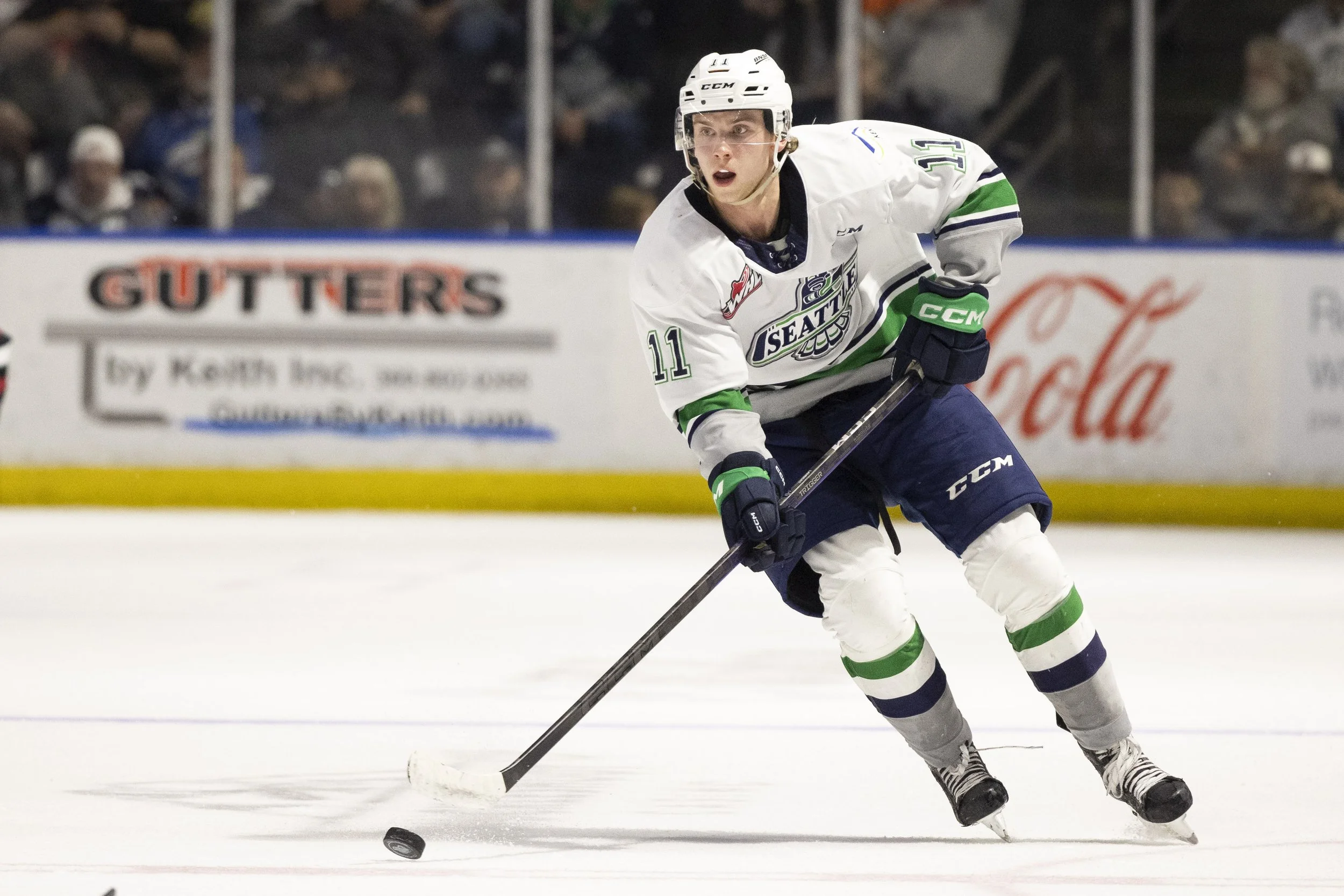 Arizona Coyotes prospect Dylan Guenther, the tenth NHL prospect on this incredibly stacked Seattle Thunderbirds roster, continues to get acclimated with his new team. While he’s only played three games in Seattle colors, he’s tallied four points and seems to be fitting in just fine on a team that seems destined for a championship run. Guenther assisted on Mekai Sanders’ goal with ten ticks left in the second period, while also having numerous dangerous shot attempts that just barely missed the mark. Guenther discussed how he’s been getting settled with the team, as well as his on-ice production.